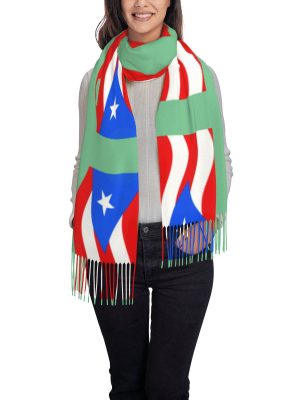 Classic Puerto Rican FlagWinter Scarf Shawl Tassel Scarves Wraps Warm Fashion Shawls Wraps Large Scarfs Women