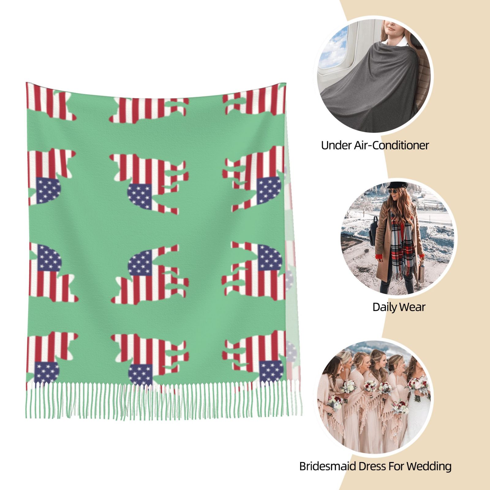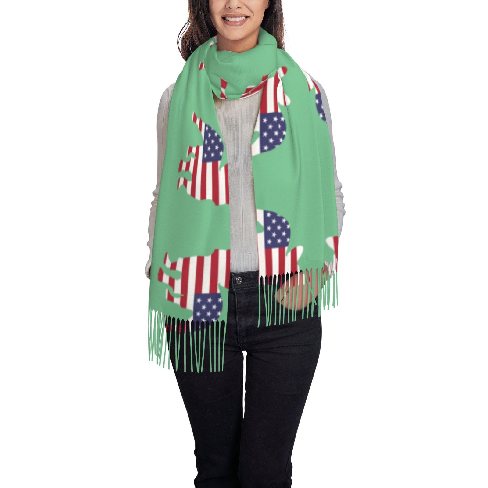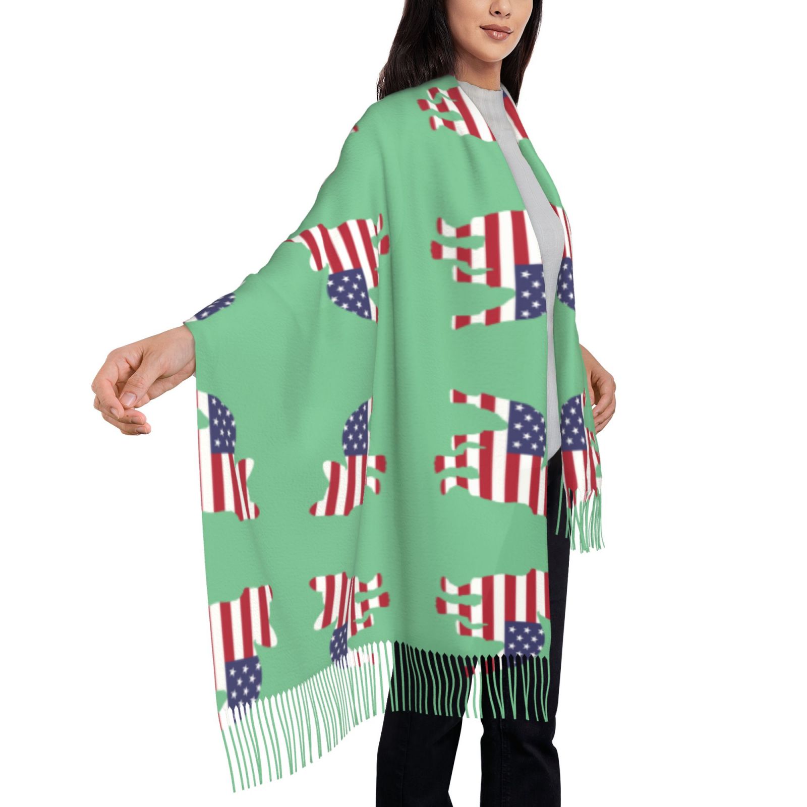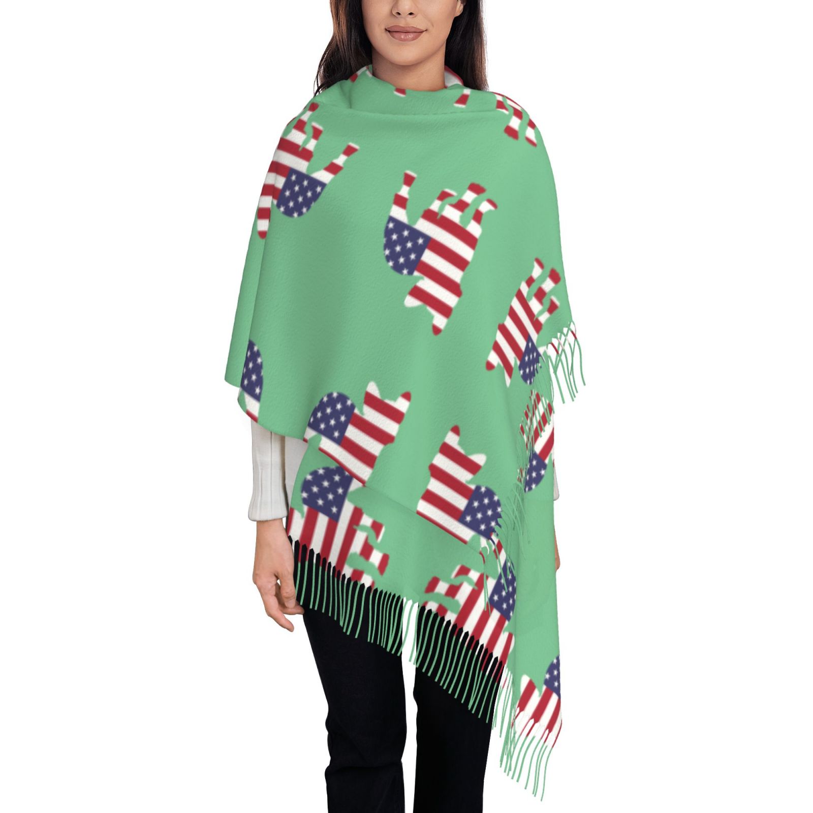 American BulldogWinter Scarf Shawl Tassel Scarves Wraps Warm Fashion Shawls Wraps Large Scarfs Women