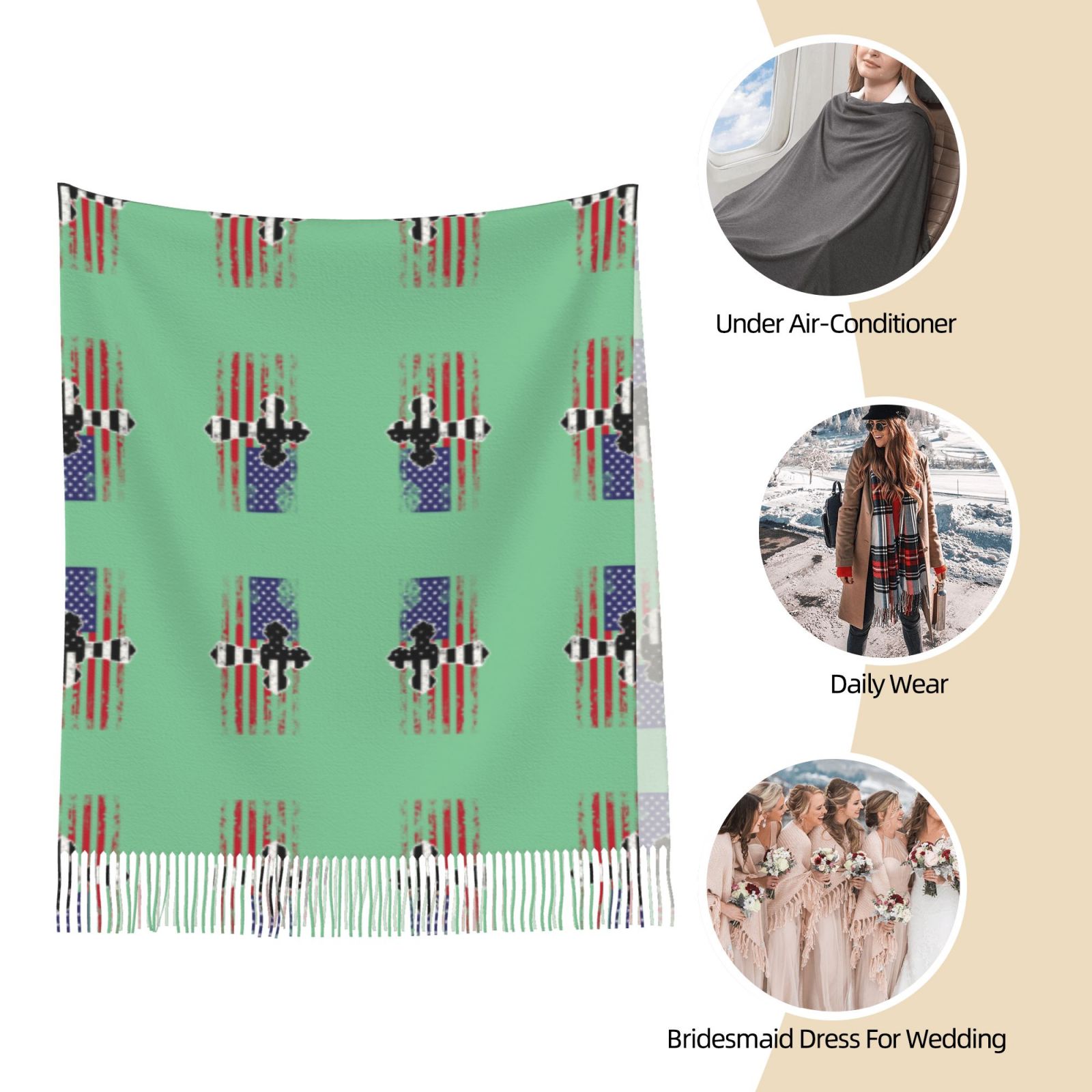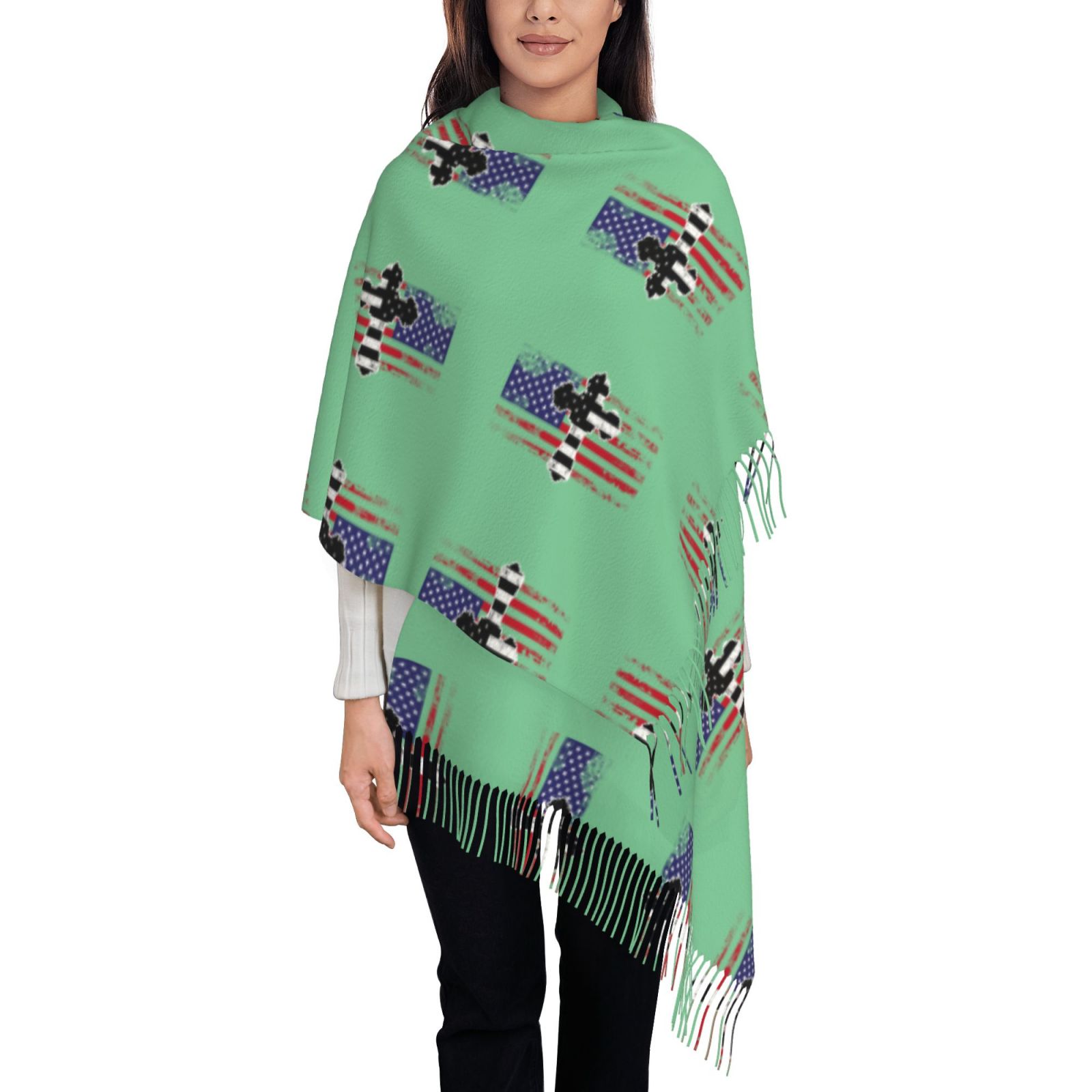 American Flag Patriotic Cross ReligiousWinter Scarf Shawl Tassel Scarves Wraps Warm Fashion Shawls Wraps Large Scarfs Women
