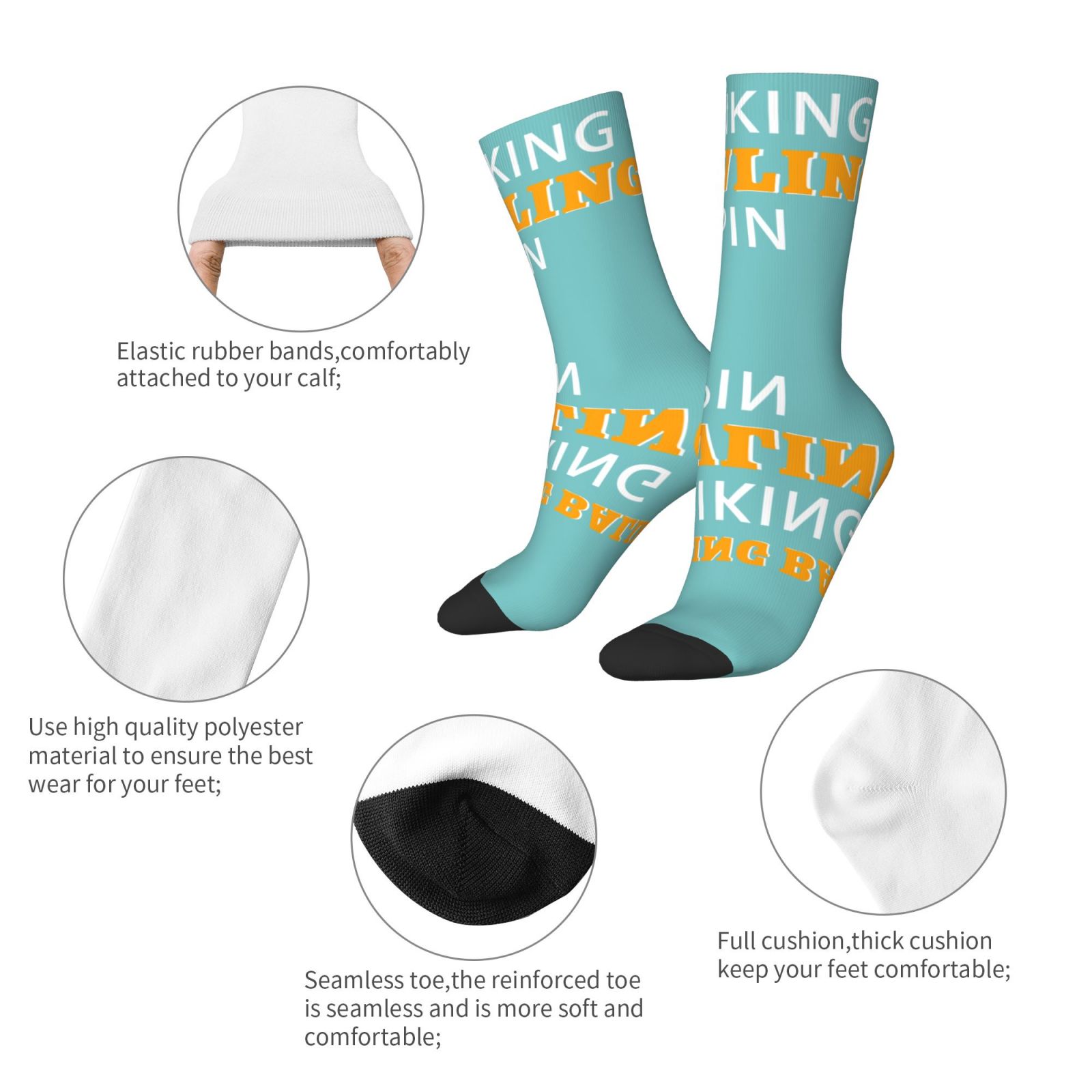 95% polyester, 5% spandex.Ensure our socks soft, comfortable, stretchy and breathable, avoid fading. The socks women are a great gift. Great for outside or inside, for everyday wear, or the holidays. You can choose for yourself, lover, family or your friends, as birthdays, Christmas gift The socks can fit most men&women’s feet, Suitable for hikers, mountain bikers, outdoor walkers, gym fitness, sports, 1000 mile run, hiking, camping, and long physically work.