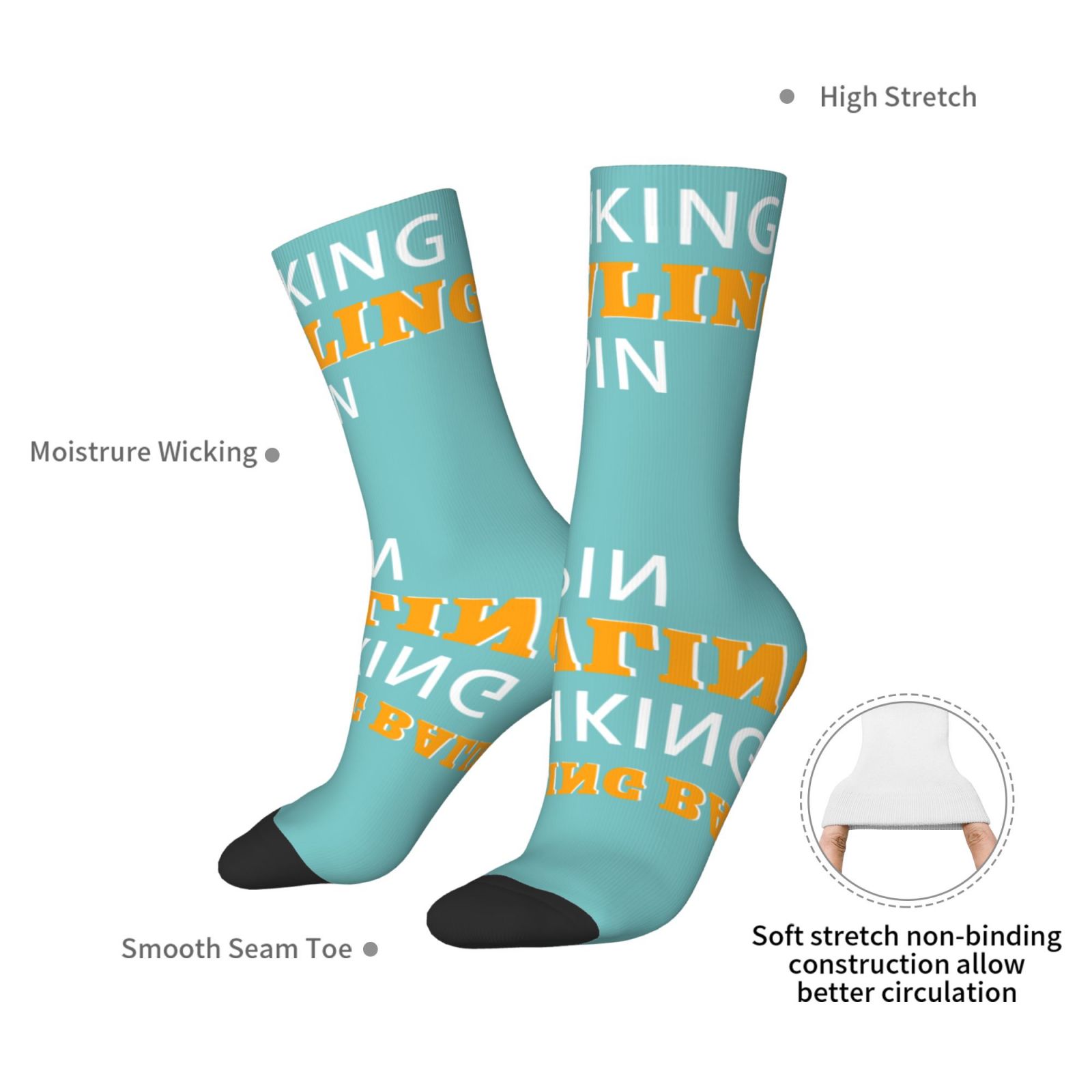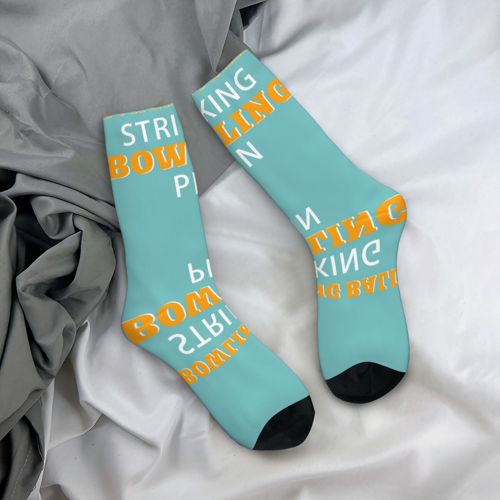 Bowling Ball Striking Bowling Pin Casual Sock Fun Colorful Socks Patterned Athletic Crew Sock Hiking Socks Unisex Outdoor Sport Running