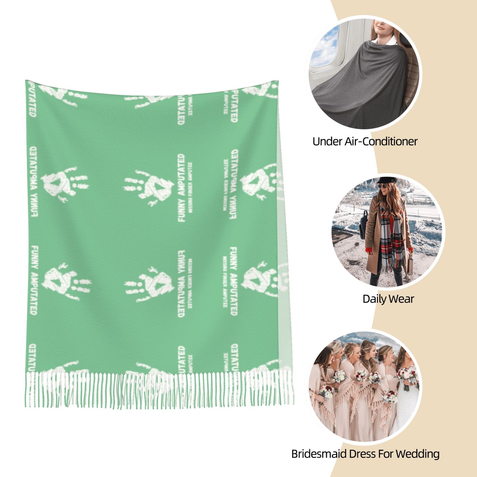 Funny Amputated Missing Finger AmputeeWinter Scarf Shawl Tassel Scarves Wraps Warm Fashion Shawls Wraps Large Scarfs Women