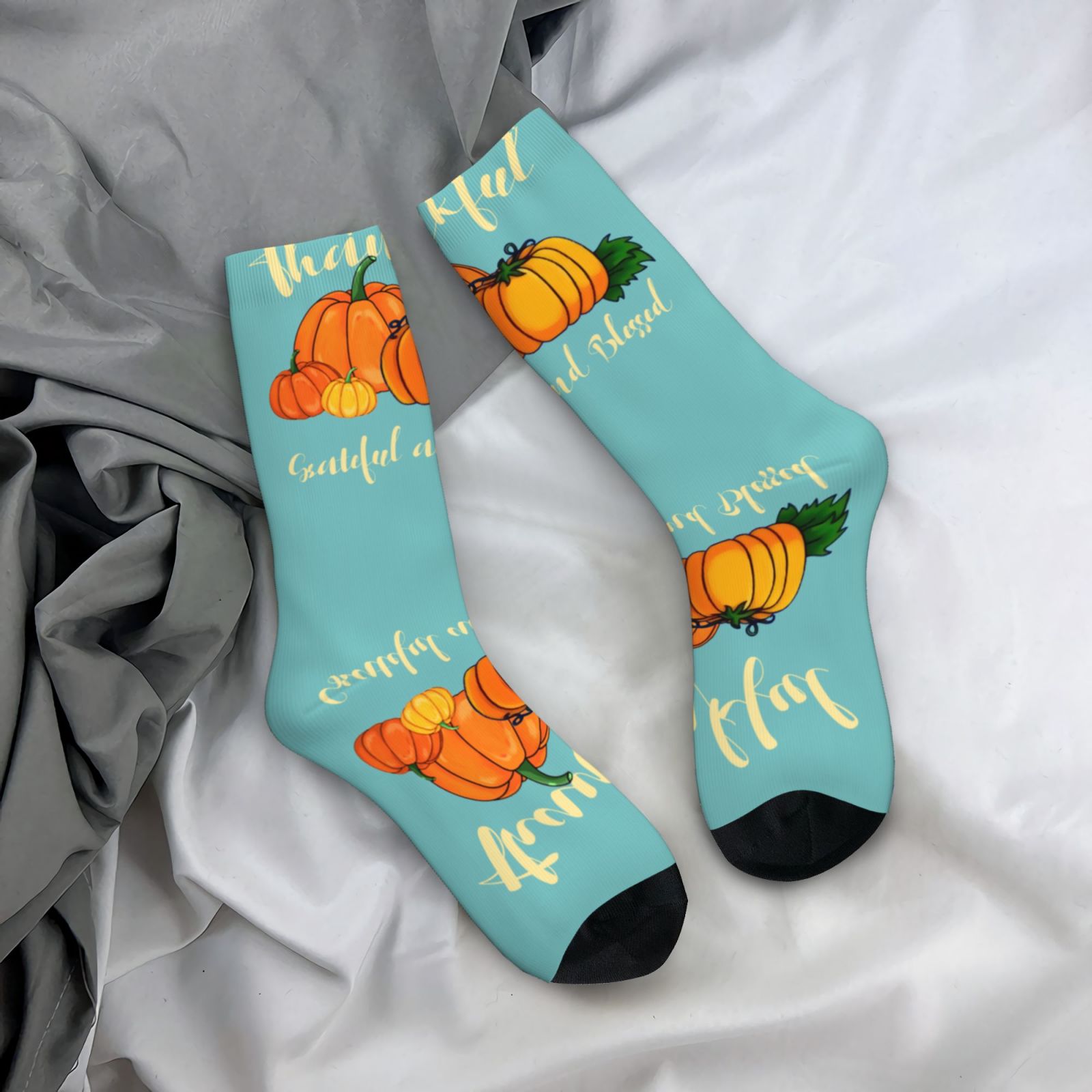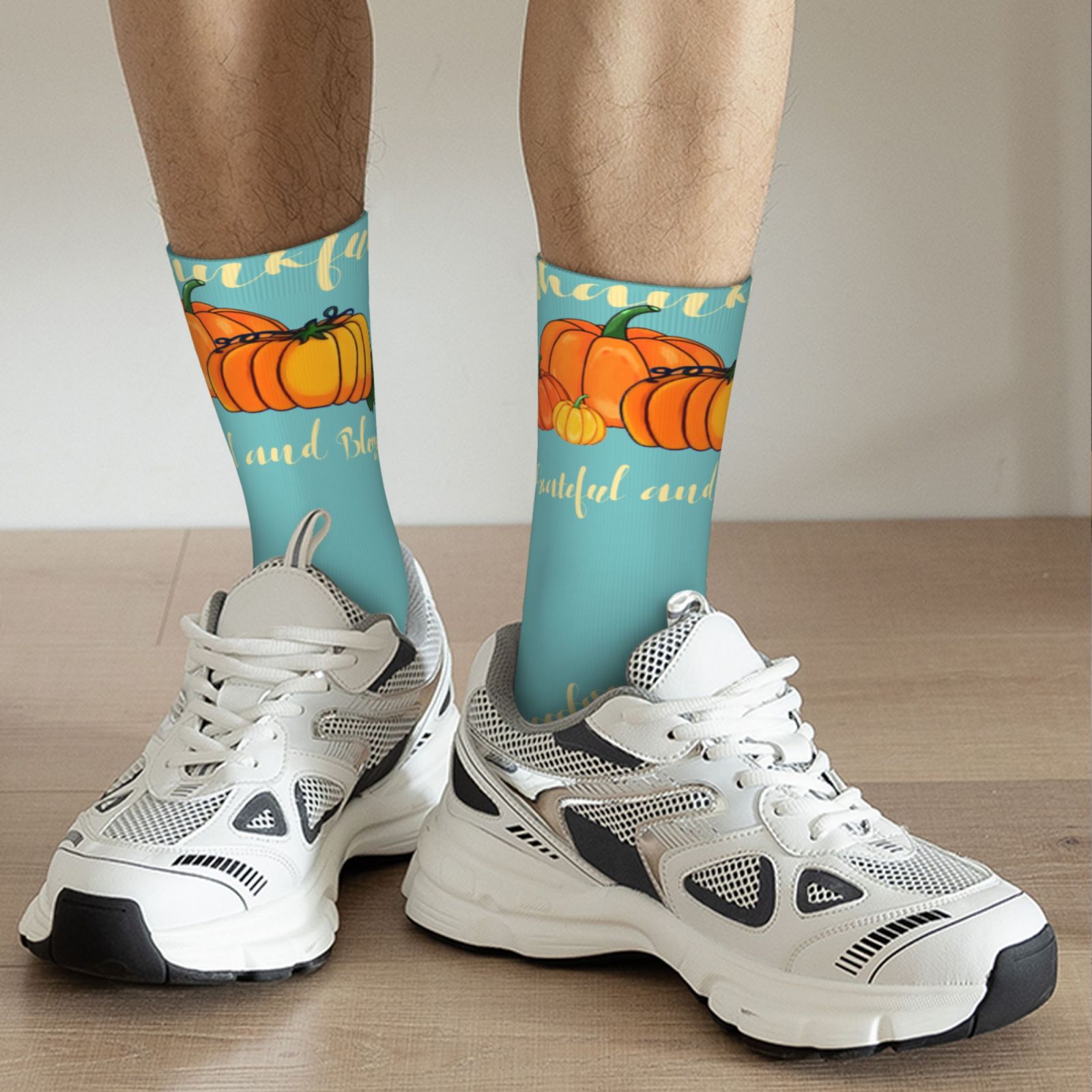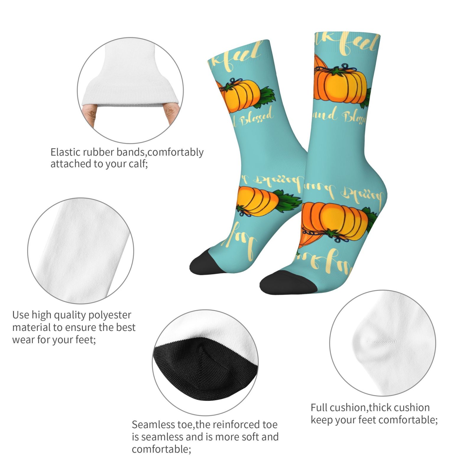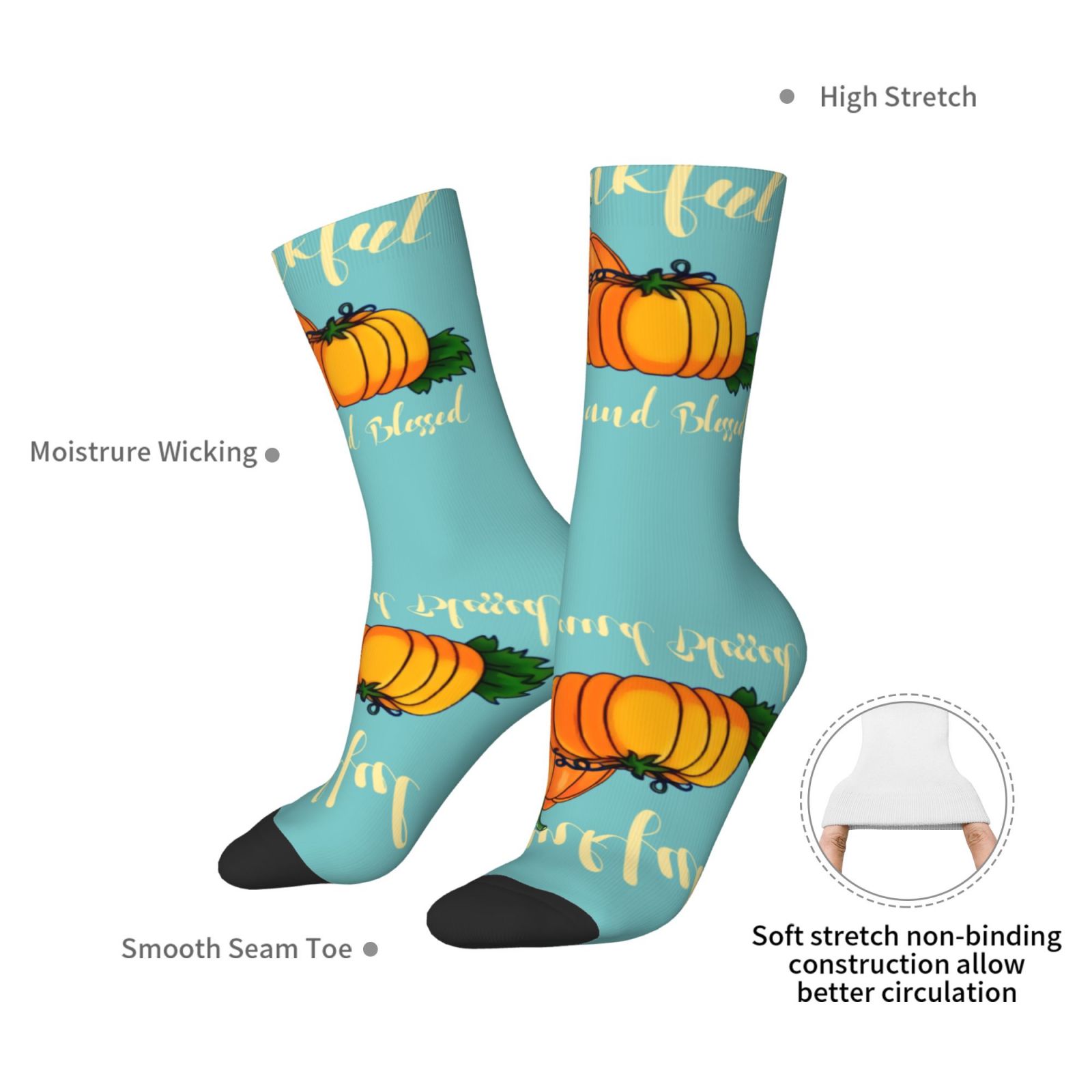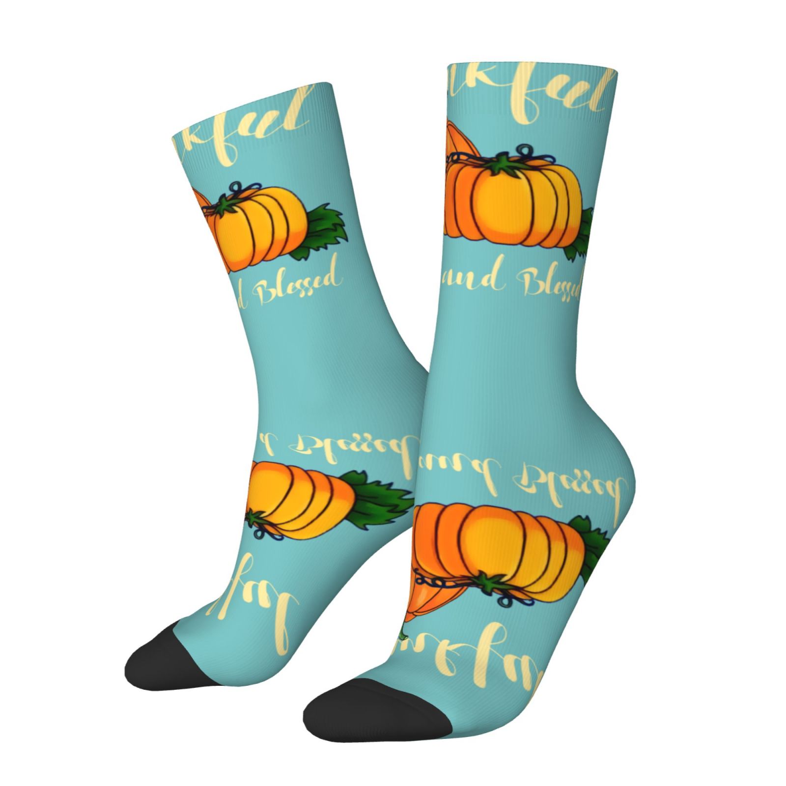Grateful Thankful Blessed Casual Sock Fun Colorful Socks Patterned Athletic Crew Sock Hiking Socks Unisex Outdoor Sport Running